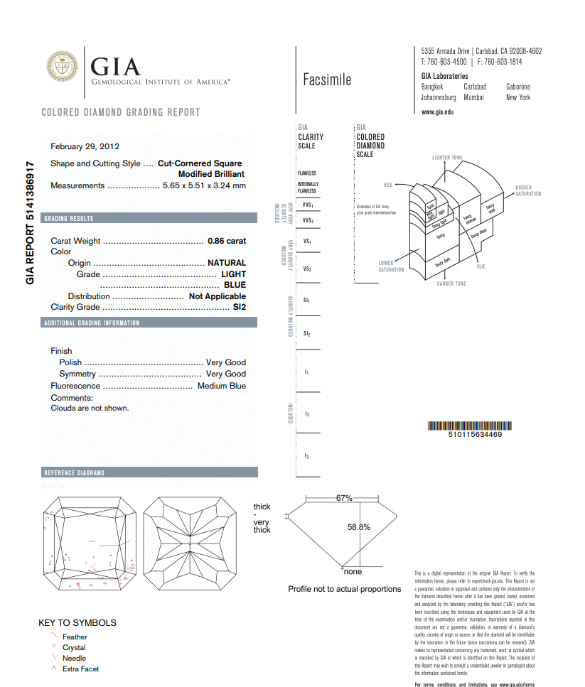 0.86ct Light Blue Radiant Cut Diamond Ring