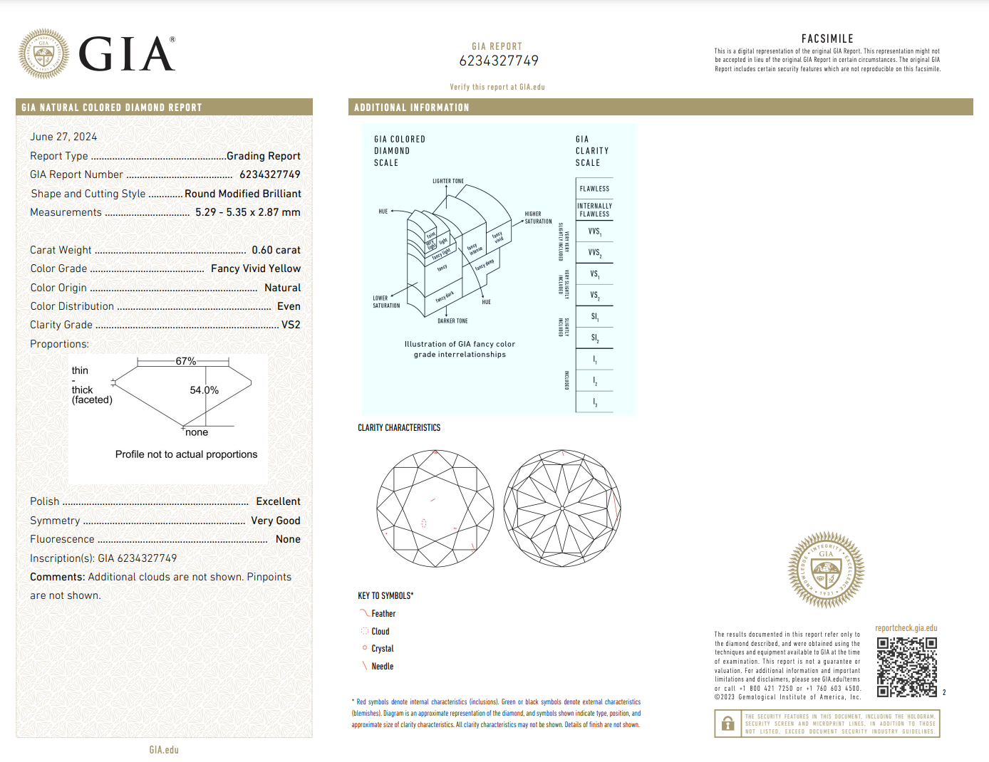 • 0.60ct Fancy Vivid Yellow with VS2 Clarity