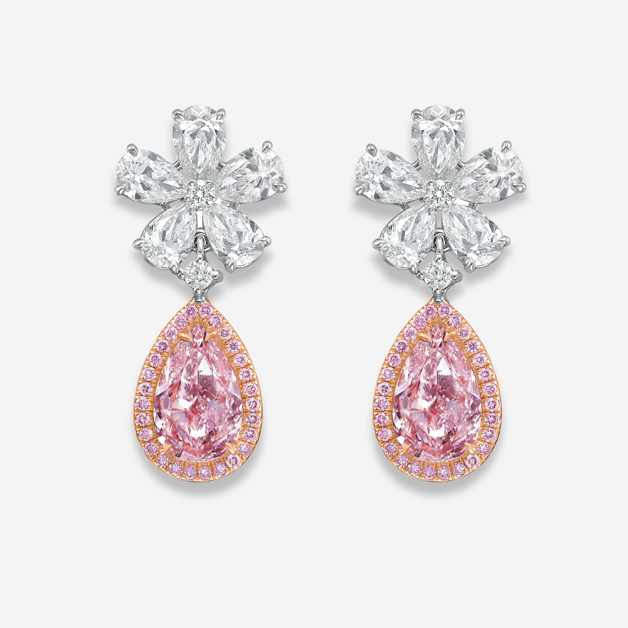 2 Carat Each Pink Pear Diamond Flower Drop Earrings