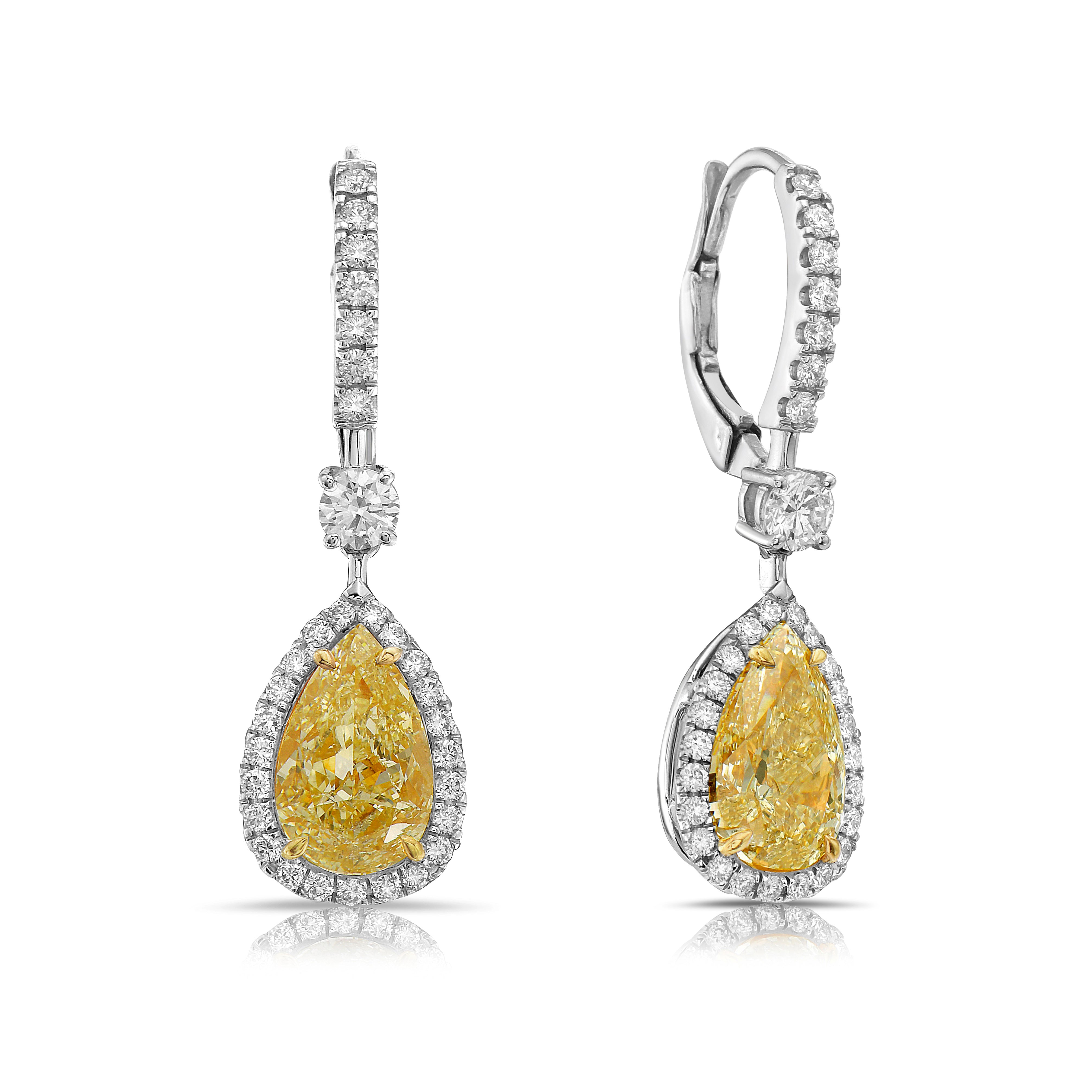 4ct Light Yellow Pear Diamond Earrings