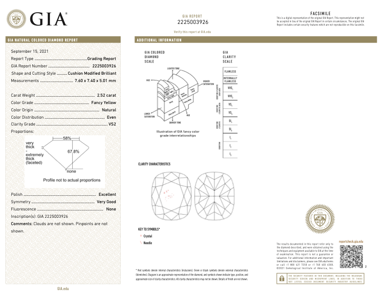 - 2.52 Carat GIA Fancy Yellow VS2 Cushion Diamond