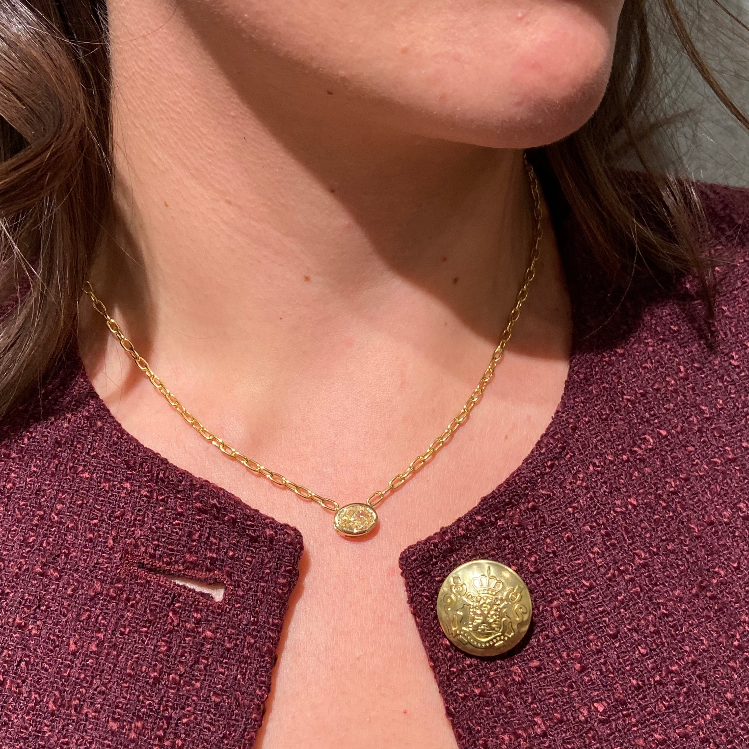 2 Carat Light Yellow Oval Diamond Pendant