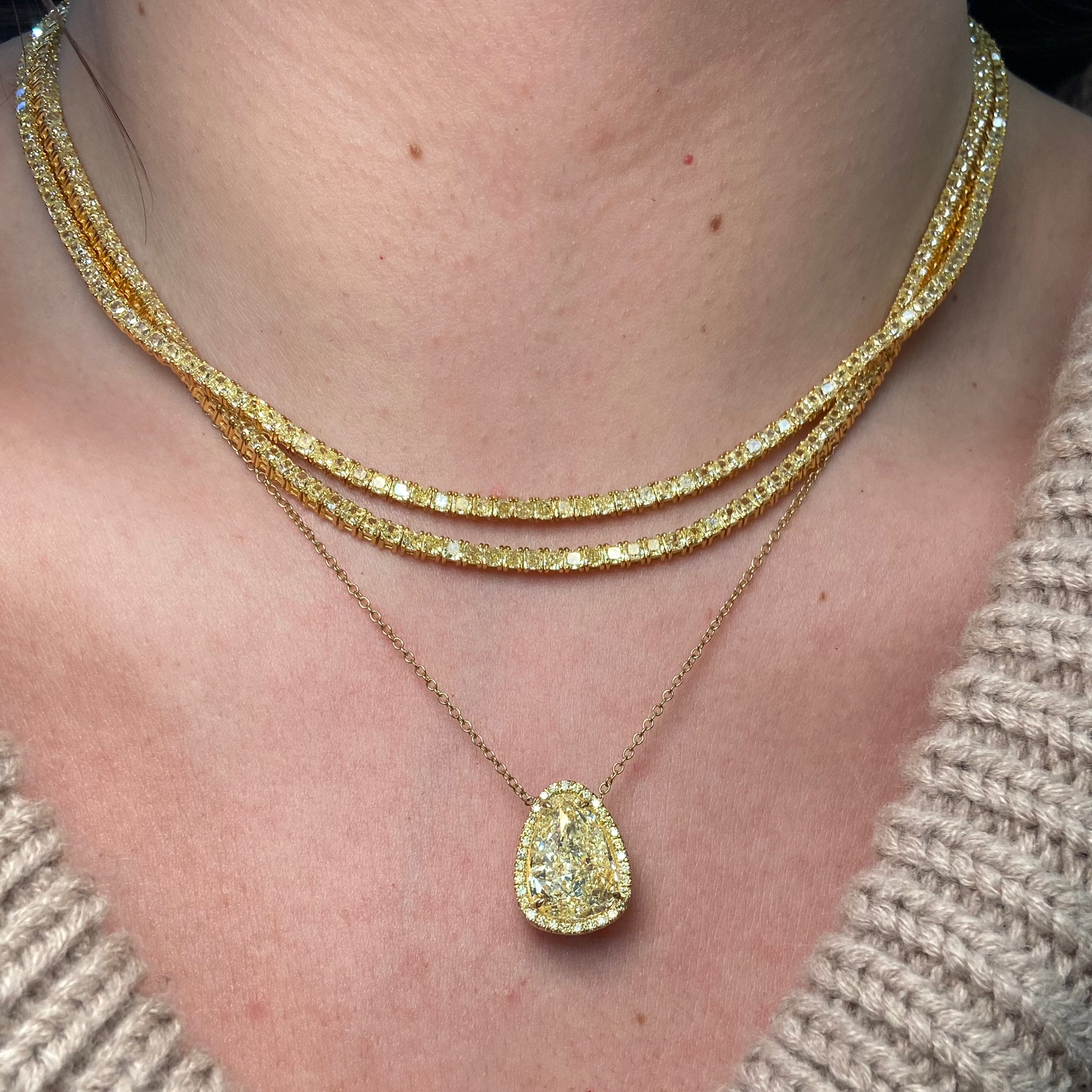 18ct Fancy Yellow Diamond Tennis Necklace