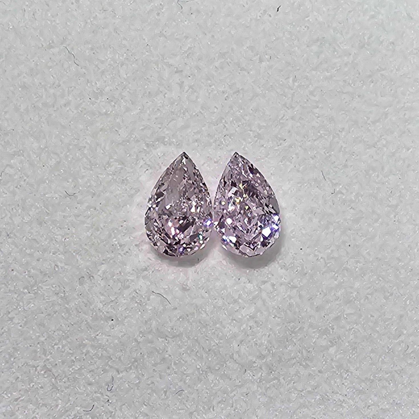 Half Carat Each Very Light Pink Pear Cut Diamonds