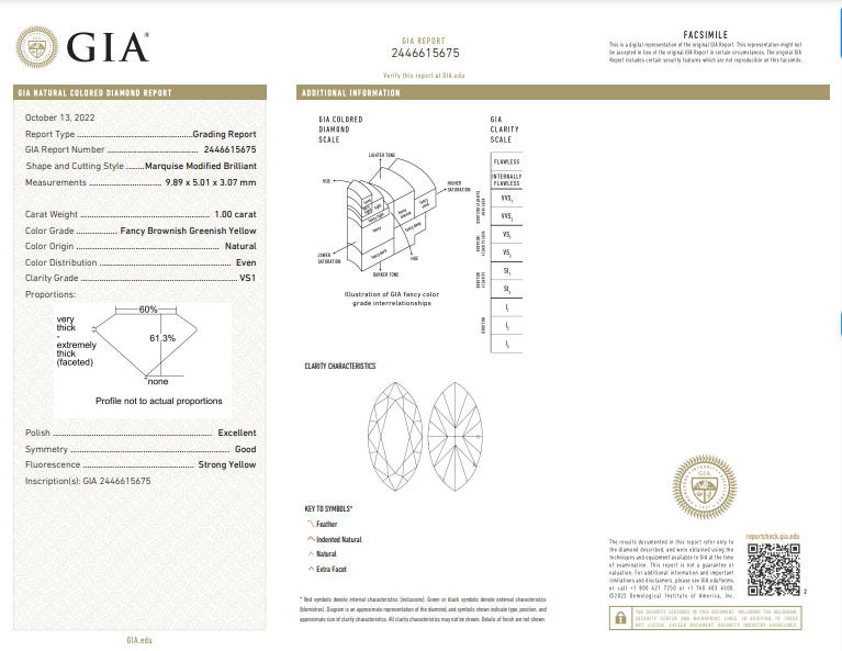 • 1.00 Carat GIA Fancy Brownish Greenish Yellow