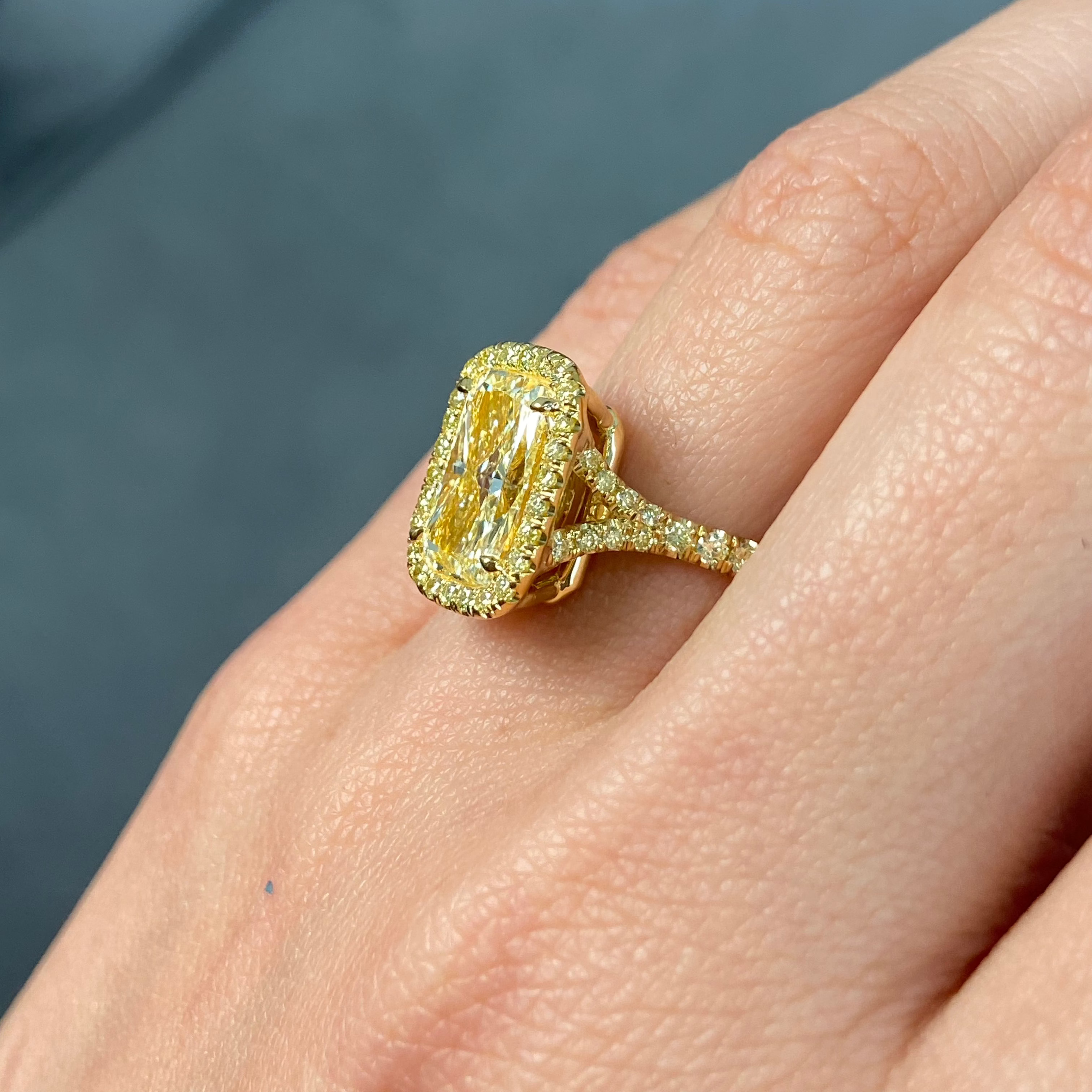 3.32ct All Yellow Elongated Cushion Halo Diamond Engagement Ring