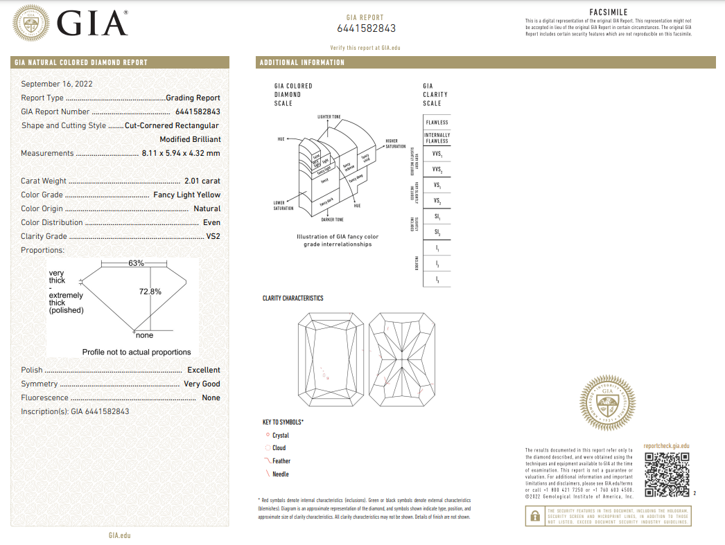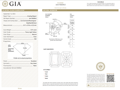 Elongated diamonds, especially elongated radiant cut diamonds, are in high demand! This is a 2.01ct GIA certified Fancy Light Yellow elongated radiant cut diamond with VS2 Clarity, Excellent/Very Good cutting and no fluorescence.