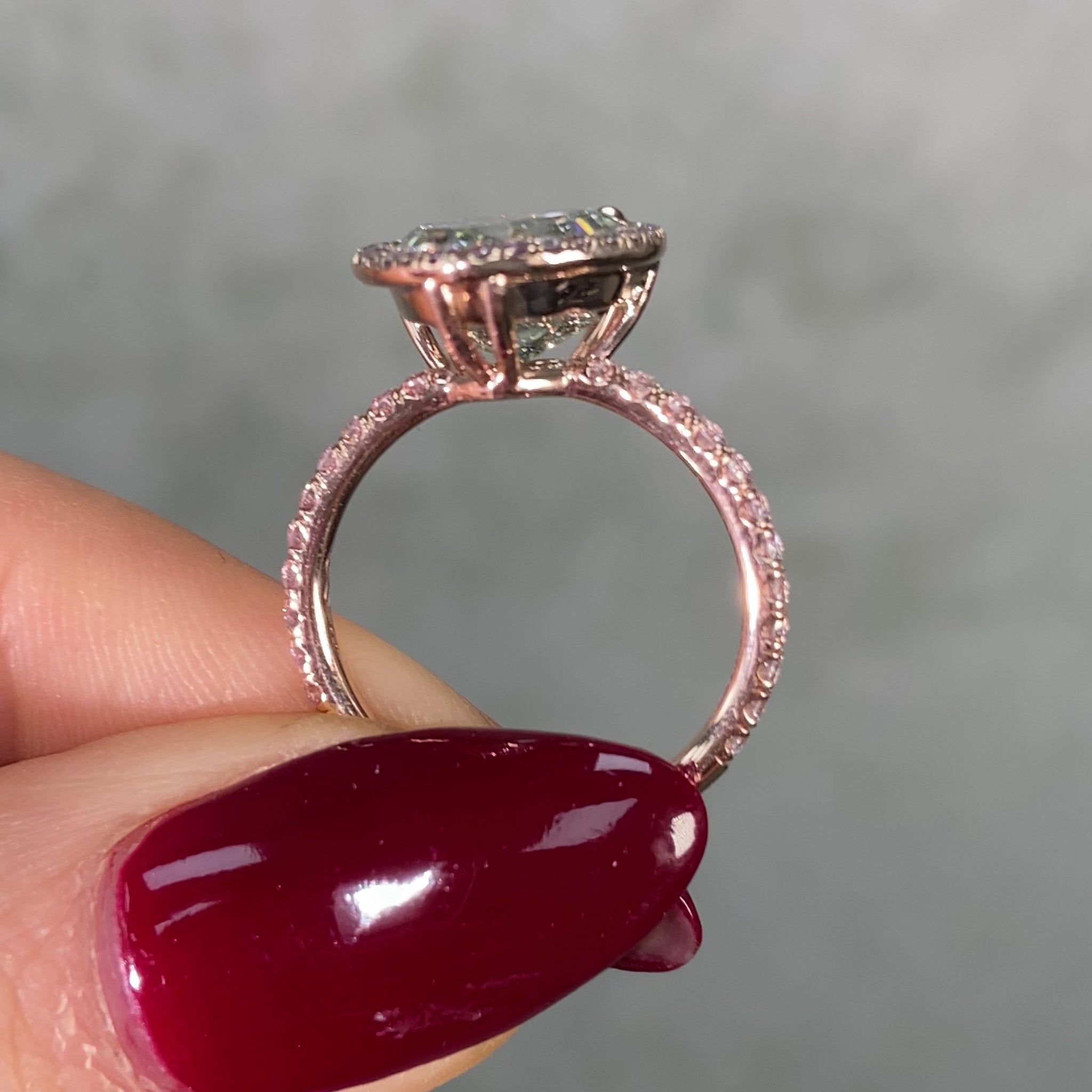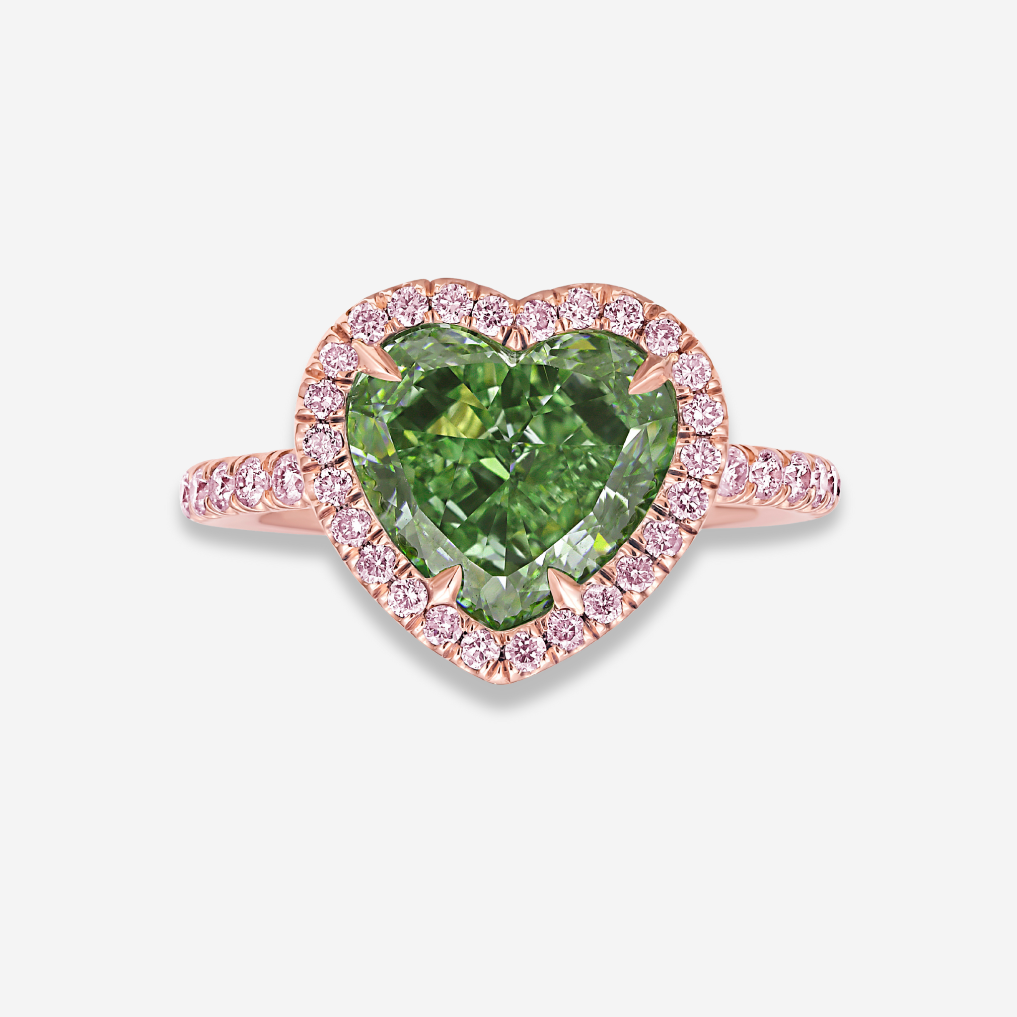3.4 Carat Pink Halo Green Heart Diamond Engagement Ring