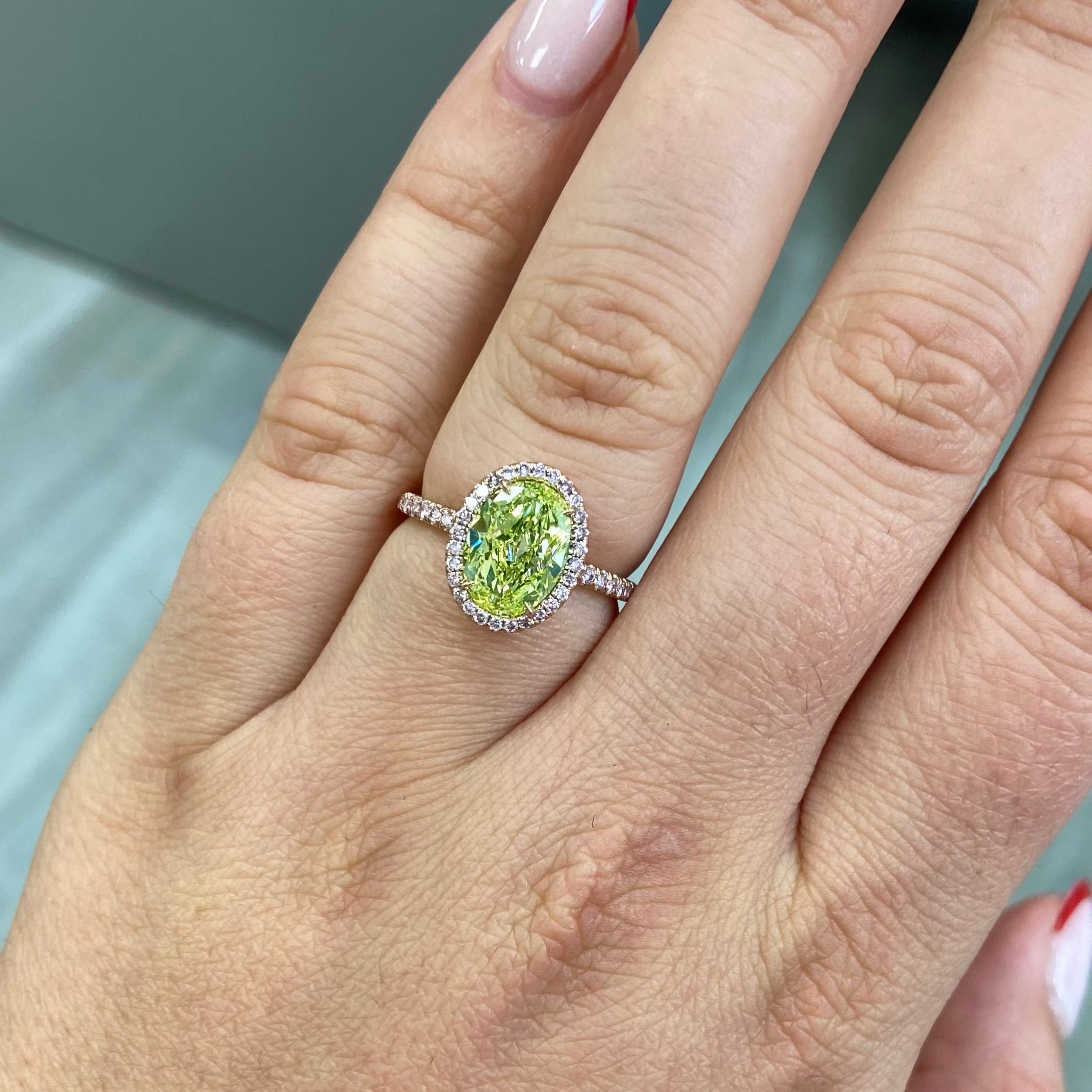 2ct Fancy Intense Green-Yellow Oval Diamond Ring