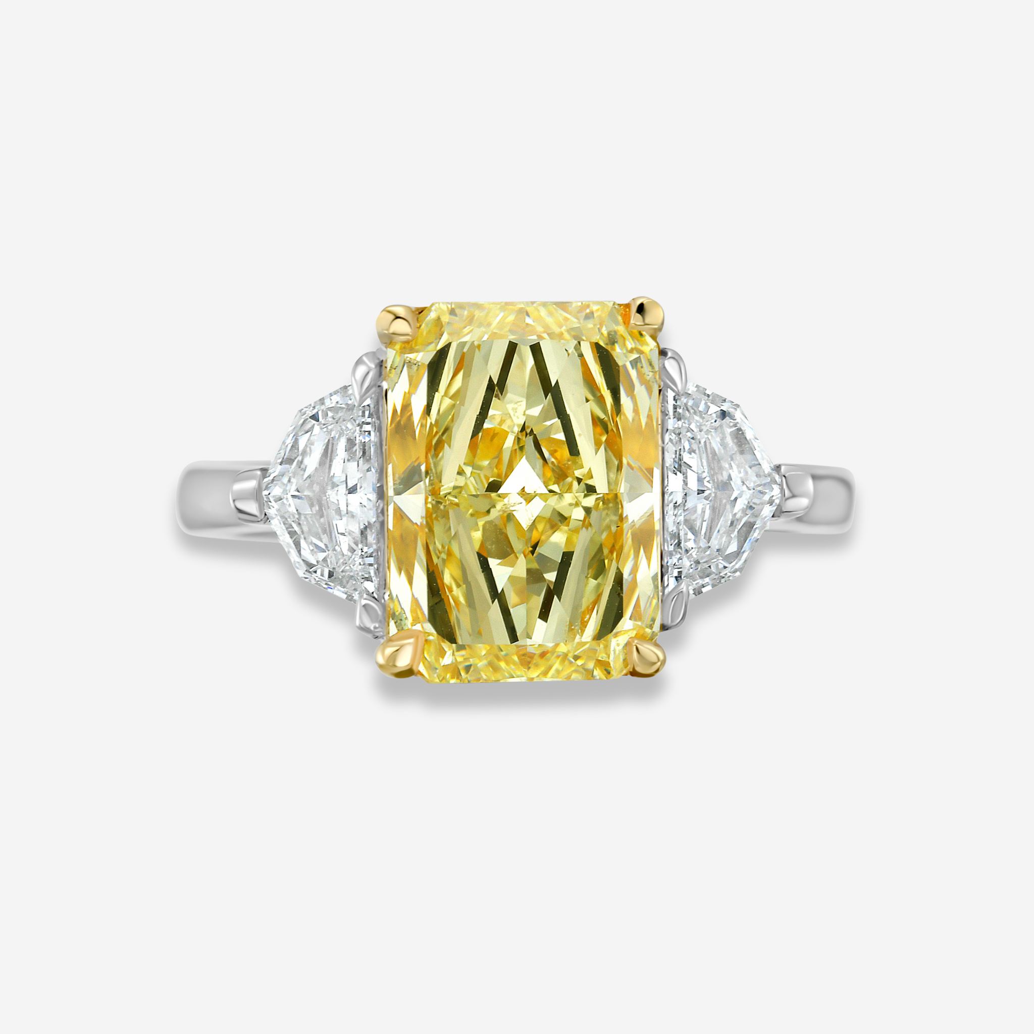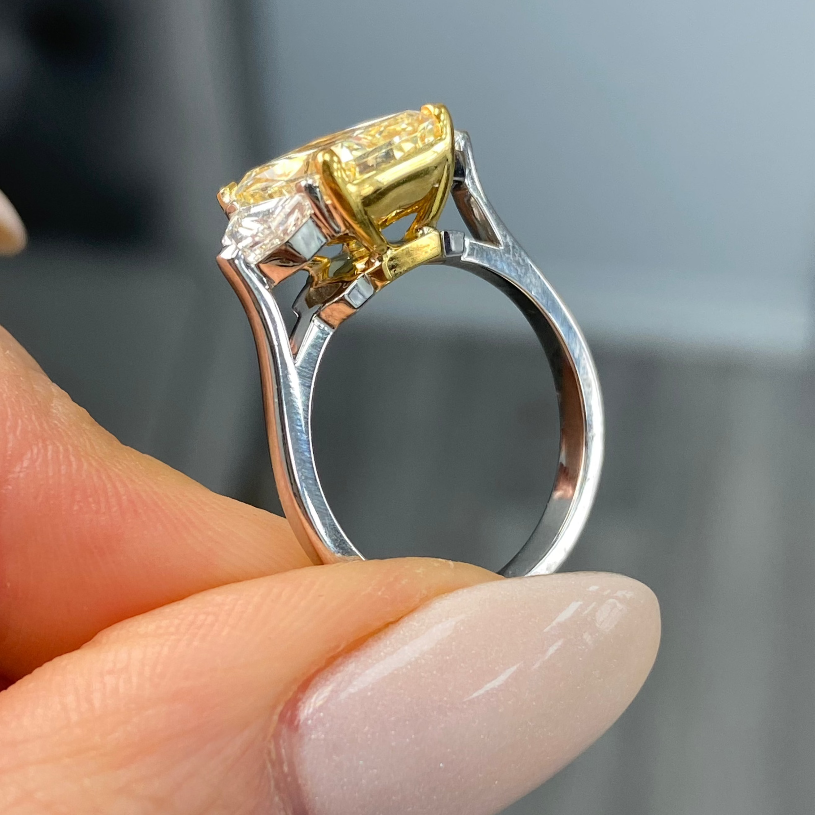 3.23 Carat Fancy Light Yellow Elongated Radiant Diamond Engagement Ring