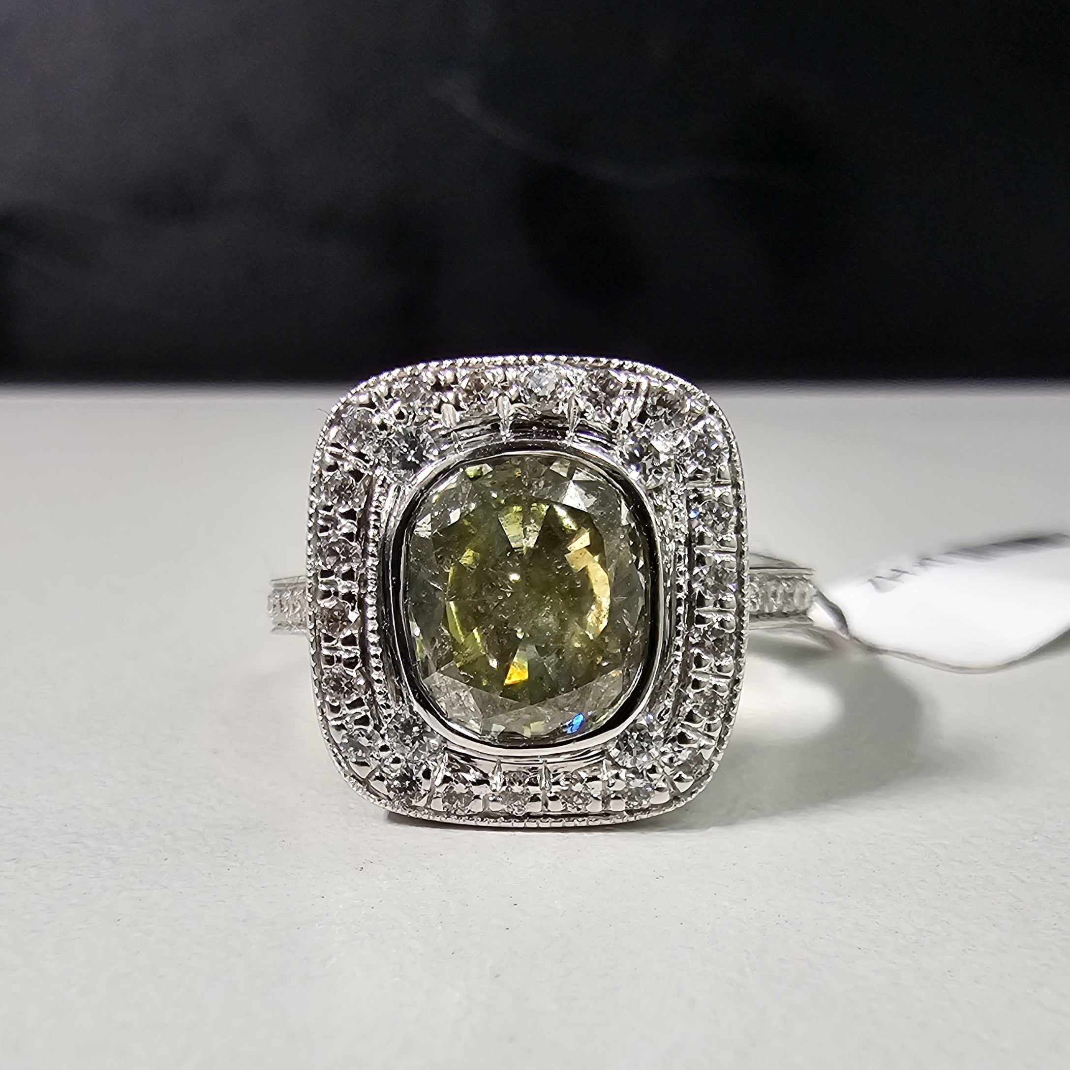 2ct Green and White Diamond Ring