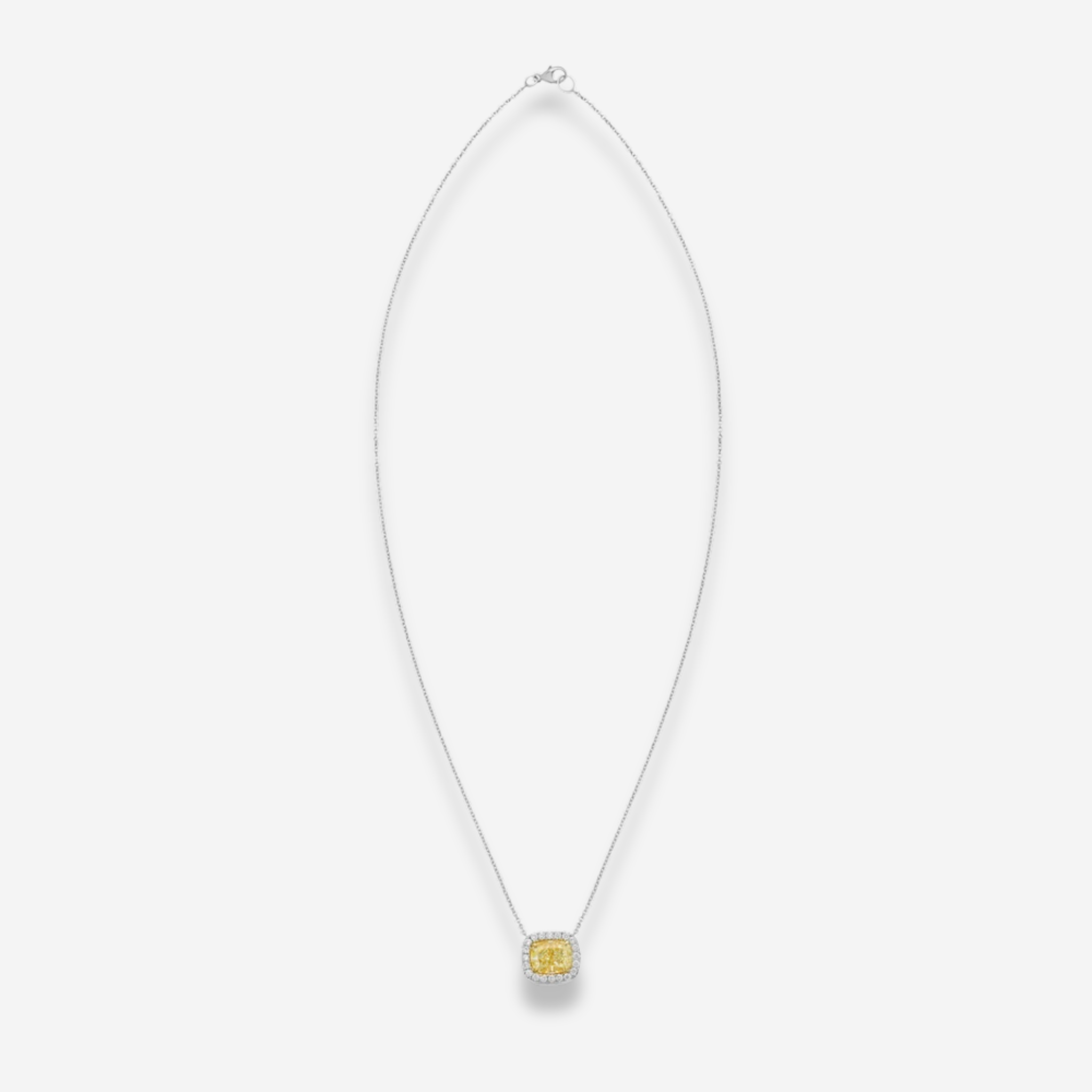 Stunning natural yellow diamond Necklace with White Halo diamonds and a VVS1 clarity.
