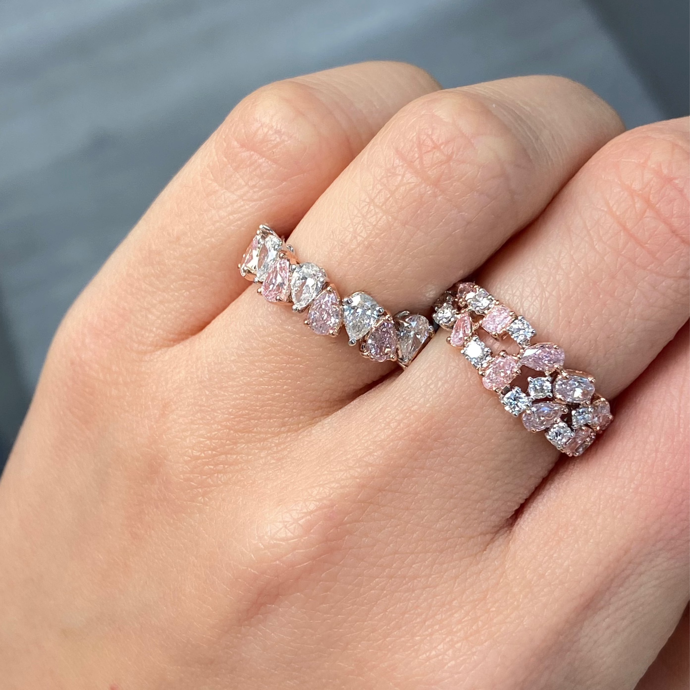 Pink diamonds, one of nature's most rare treasures, paired with the timeless design of the eternity ring, create a breathtaking symbol of love with no beginning and no end.