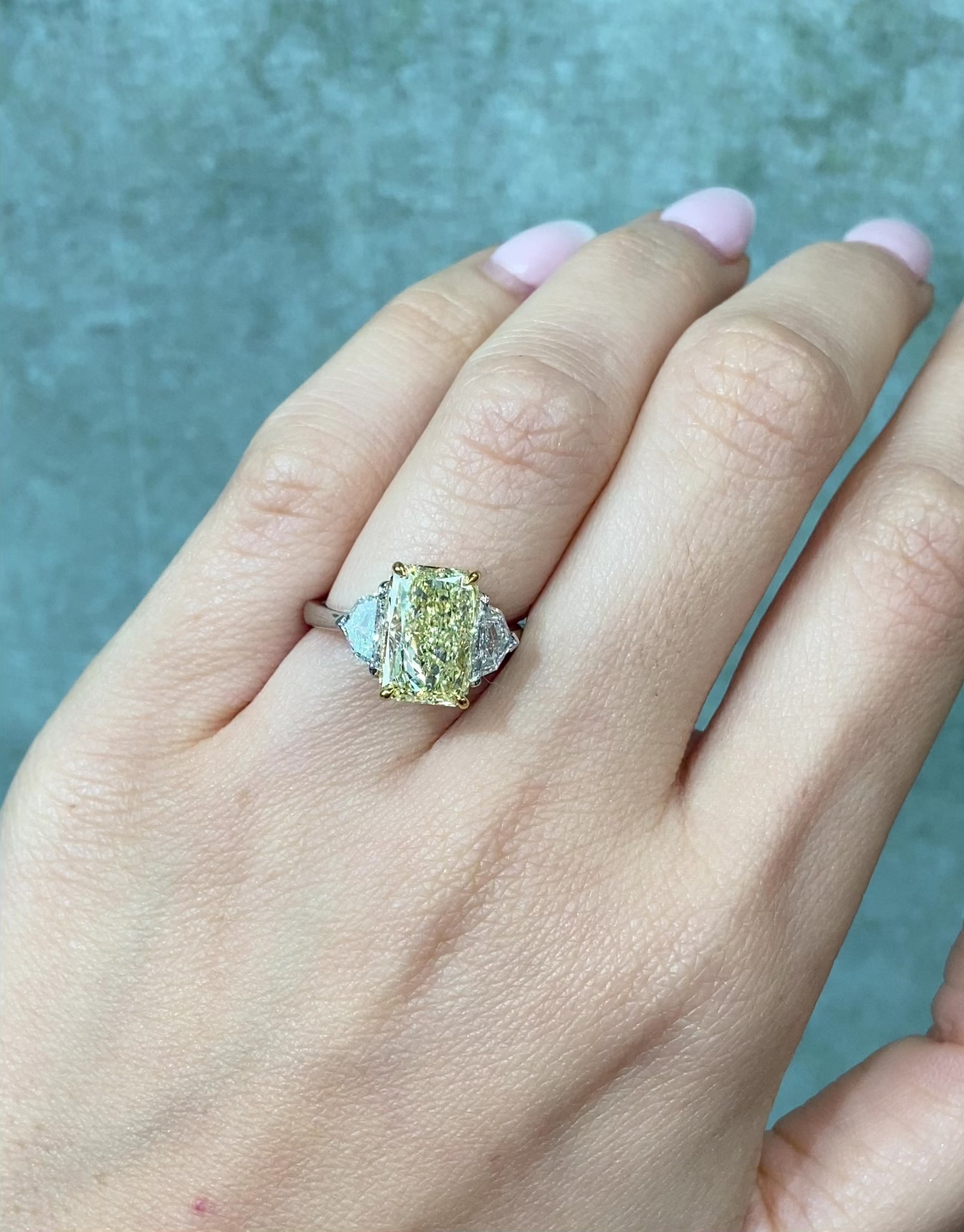 3.9ct Elongated Radiant Yellow Diamond Engagement Ring