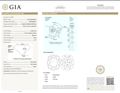 6.08ct Fancy Yellow-Green Cushion Diamond Engagement Ring