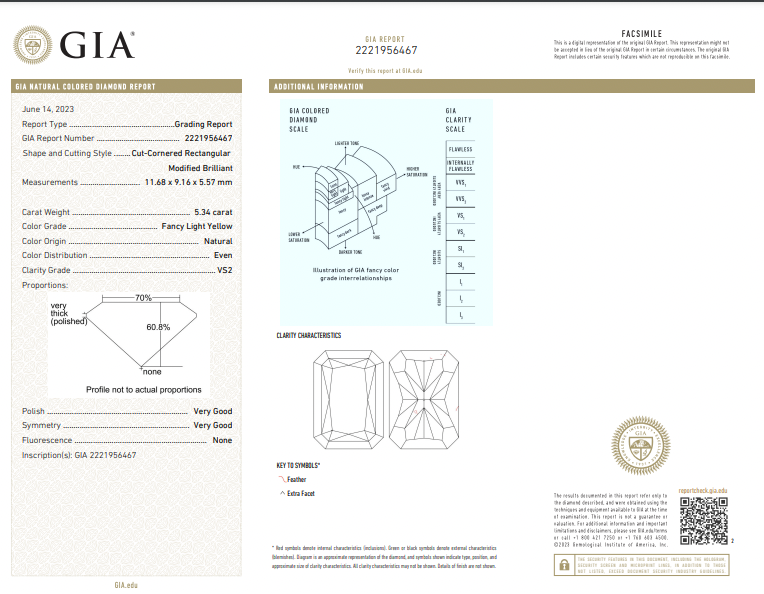 • 5.34 Carat Fancy Light Yellow Elongated Radiant Cut Center Diamond