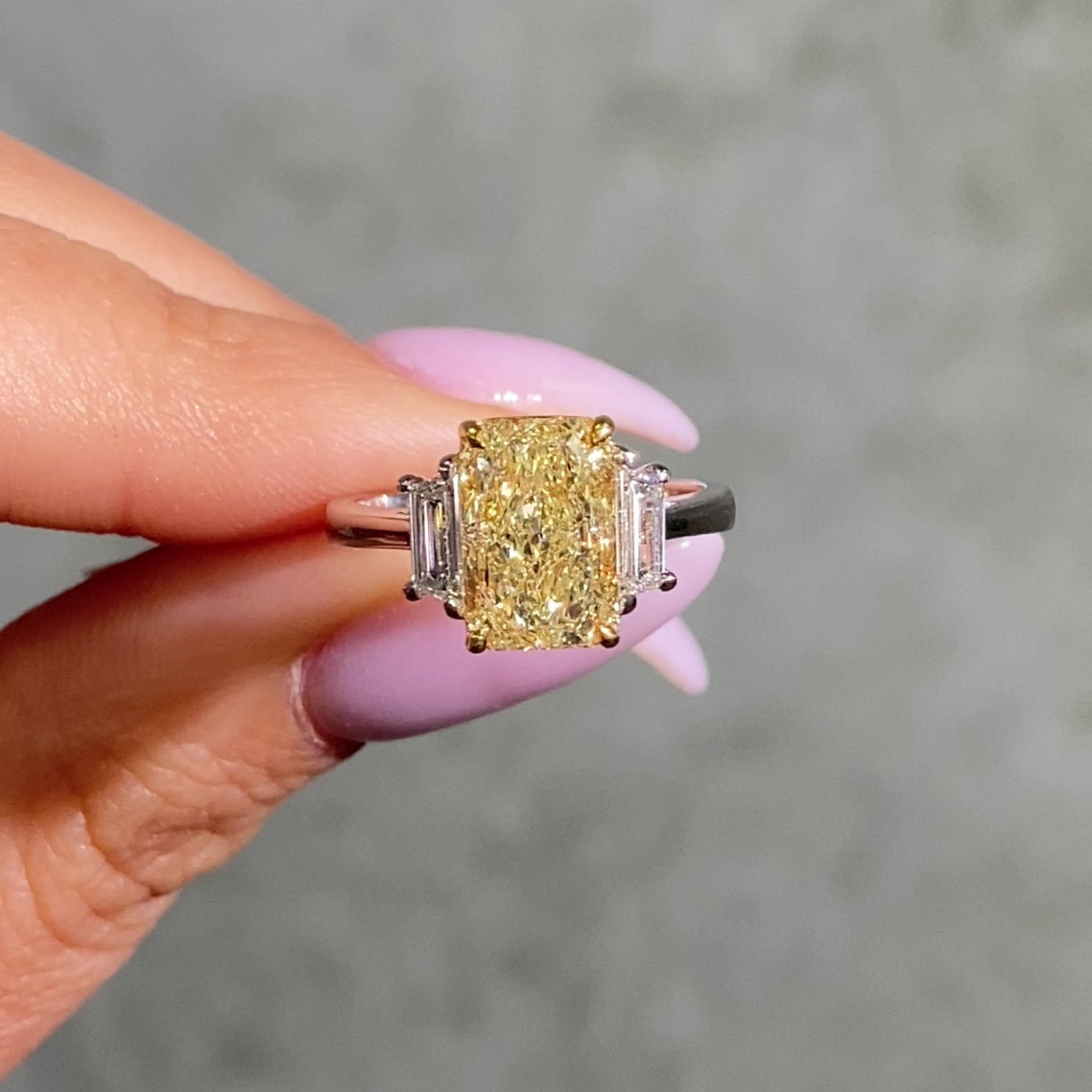 3.01ct Light Yellow Elongated Radiant Diamond Engagement Ring