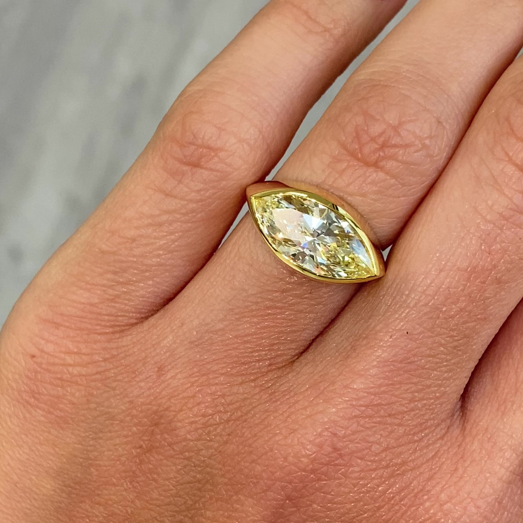 Fancy Yellow Marquise Diamond East West Bezel Ring